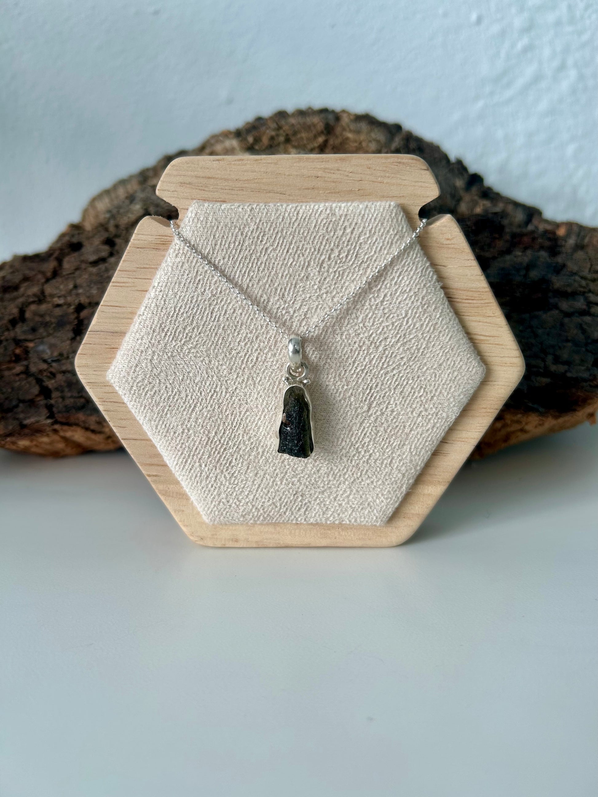 Moldavita de 2,5gr engarzada y con cadena en plata de ley 925
